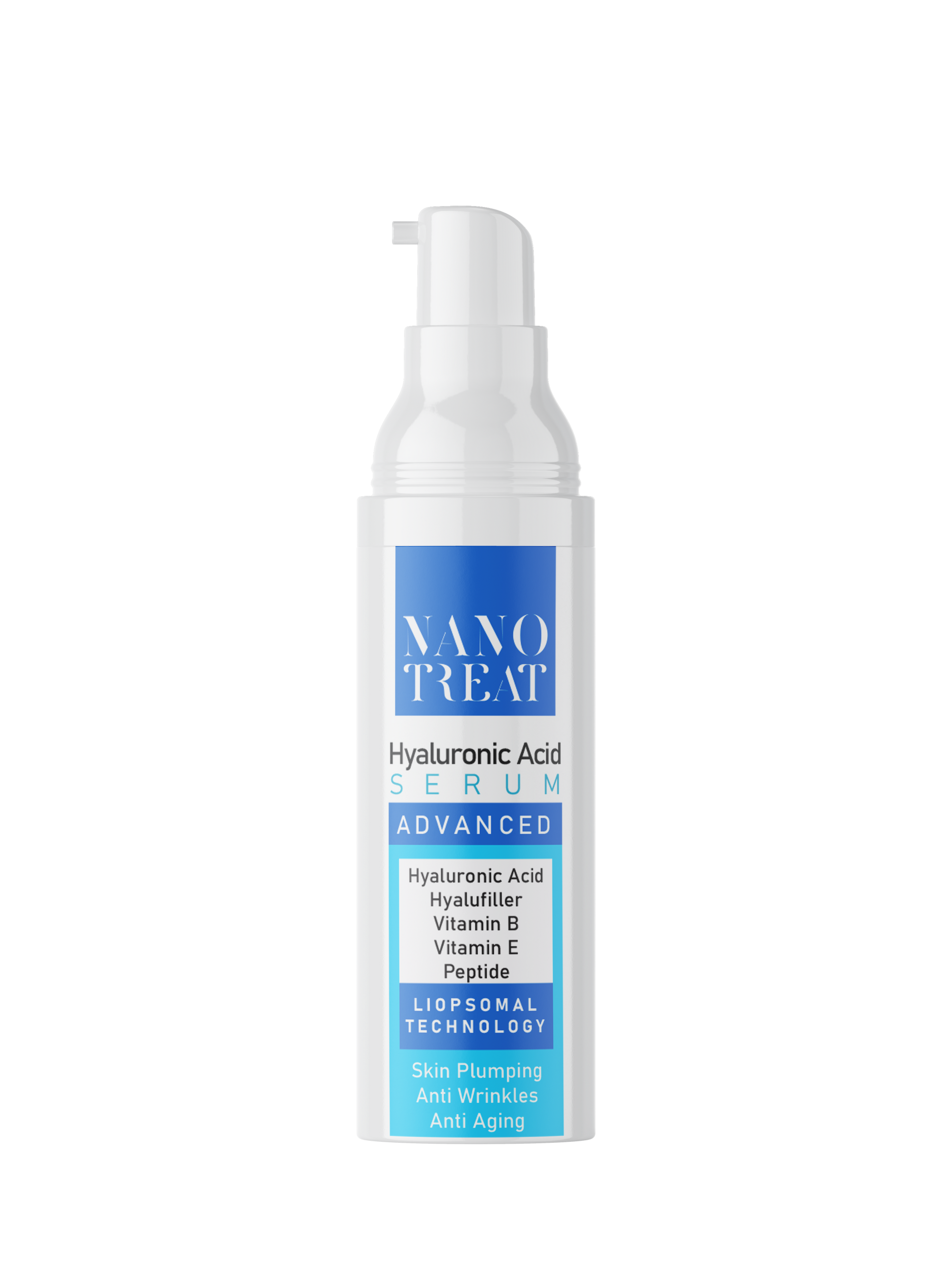 سيروم نانو تريت بحمض الهيالورونيك المصنوع بتقنية ليبوسومال التي تزيد من امتصاص وفعالية المكونات أكثر من المكونات التي لا تحتوي على تقنية ليبوسومال لتجعل بشرتك أكثر امتلاءً ورفعًا وترطيبًا وخالية من التجاعيد وعلامات الشيخوخة وتوحيد لون بشرتك.